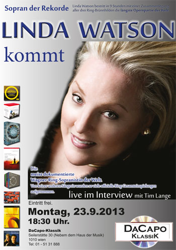 Anläßlich der Auftritte als Isolde an der Wiener Staatsoper ist Linda Watson zu Gast im bekannten Wiener CD-Shop "DaCapo-Klassik":